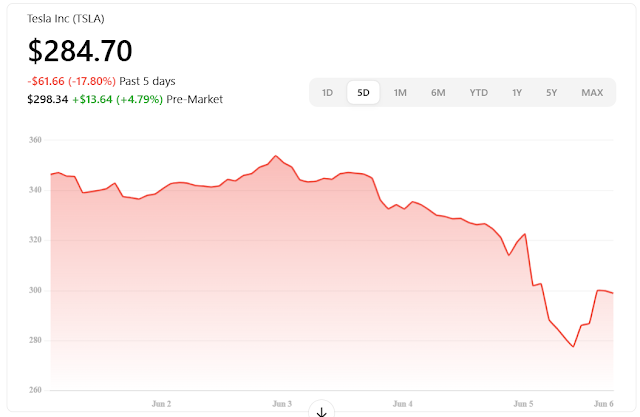 However, on June 6, 2025, Tesla's shares rebounded nearly 5% in premarket trading, reaching $298.10, following reports of a scheduled call between Musk and the White House aimed at de-escalating tensions.